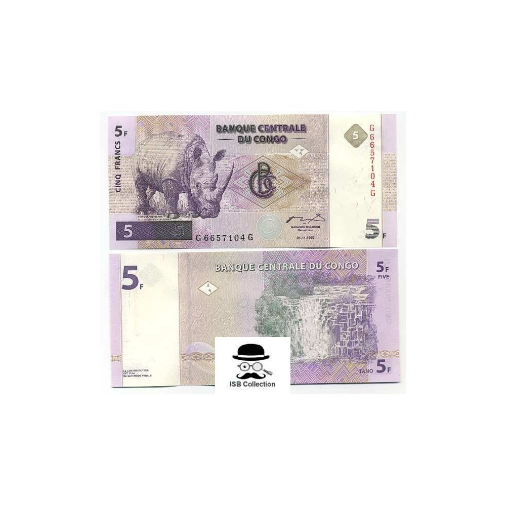 Billet de banque de congo valeur faciale 5 francs pick 86 -