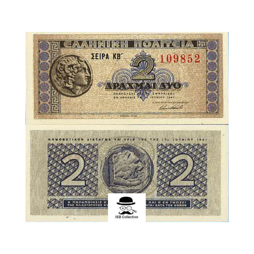 Billet de banque de grèce valeur faciale 2 drachmai pick 318 -