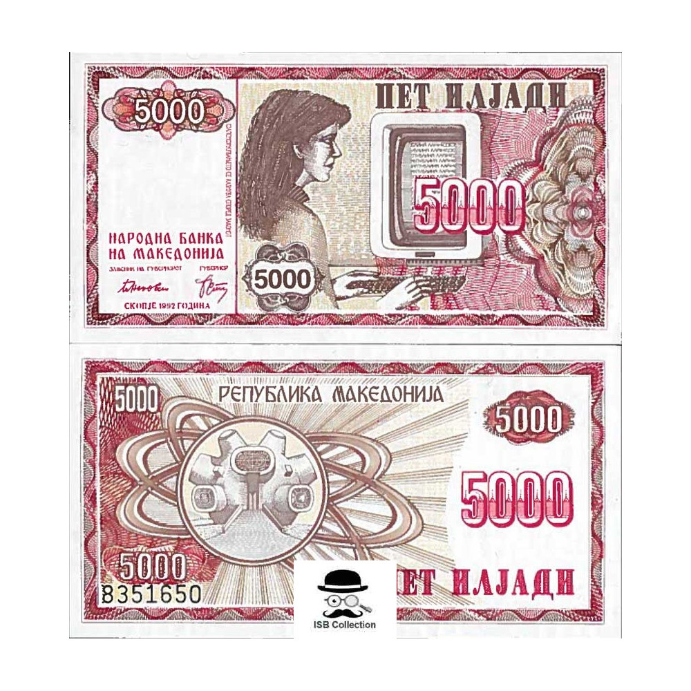 Billet de banque de macédoine valeur faciale 5000 denari pick 7 -
