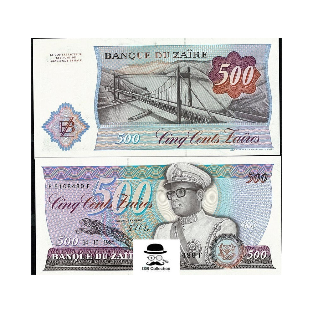 Billet de banque de zaïre valeur faciale 500 zaires pick 30 b-