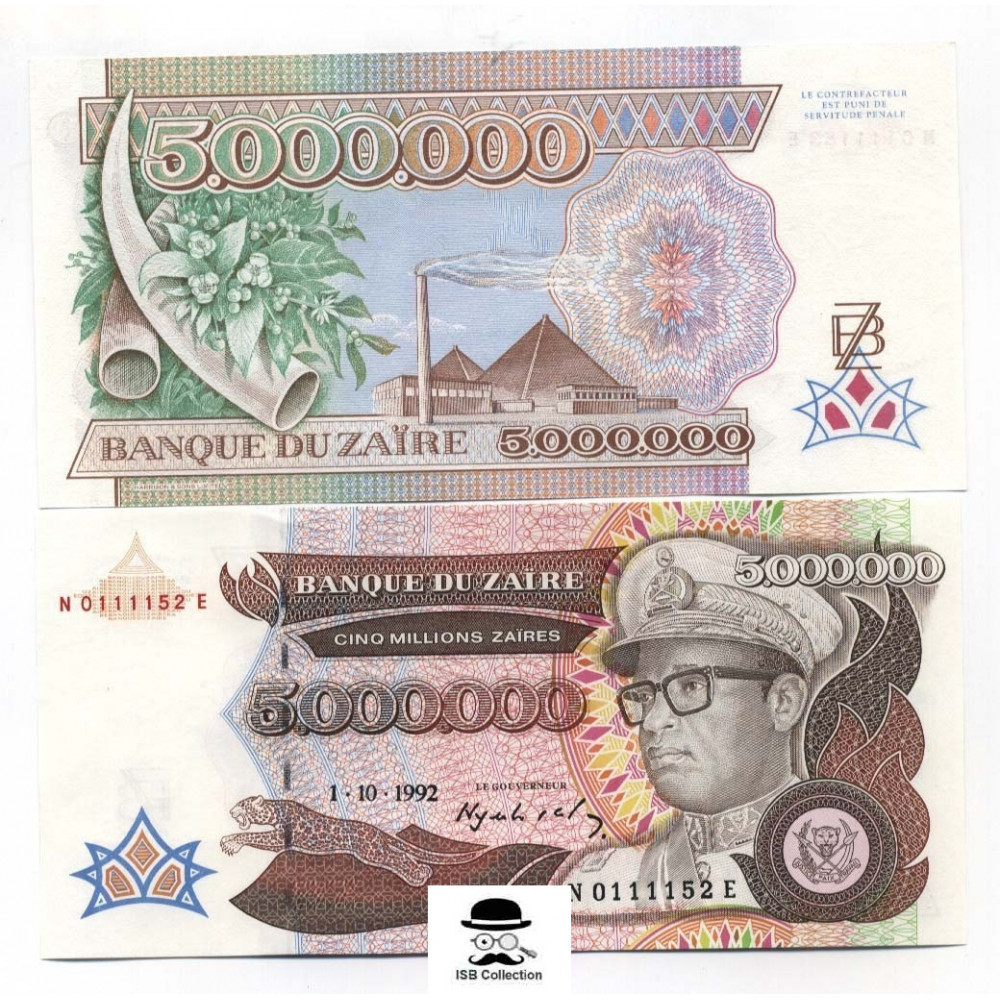 Billet de banque de zaïre valeur faciale 5 millions zaires pick 46 -