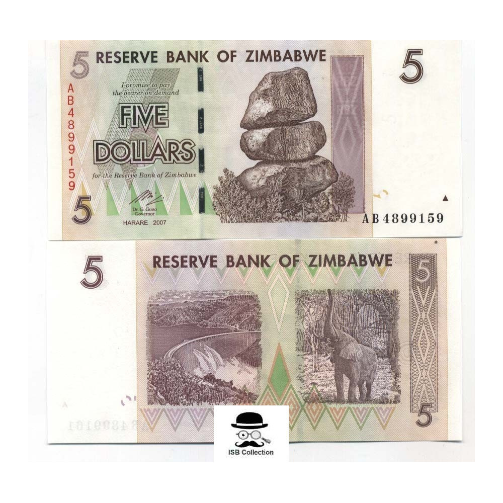 Billet de banque de zimbabwe valeur faciale 5 dollars pick 66 -
