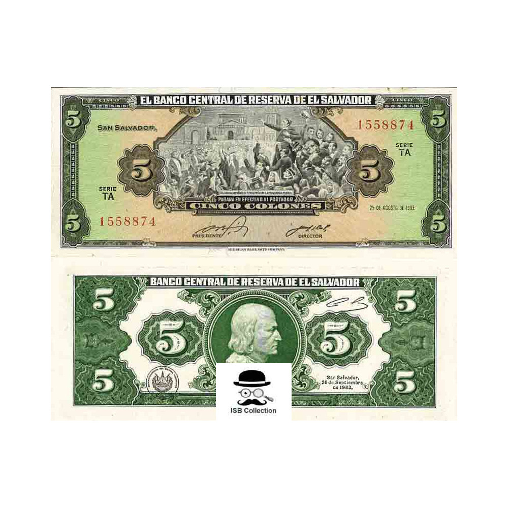Billet de banque de salvador valeur faciale 5 colones pick 134 -